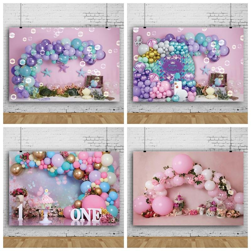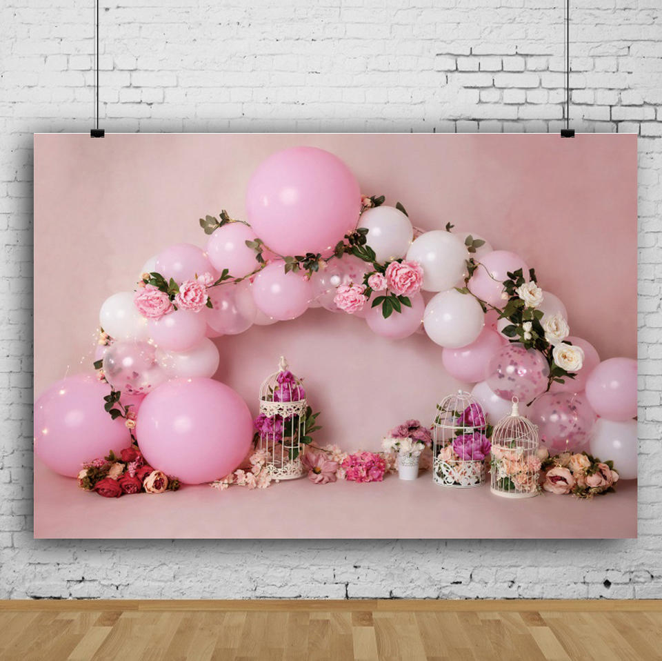 Sfondo Serie Rosa con Palloncini per Fotografia, Decorazioni per Feste, Banner per Tavolo Torta, Accessori per Compleanno