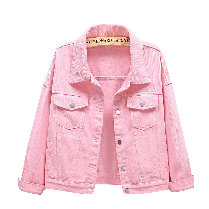 Nuova Giacca di Jeans Colorata Primaverile Rosa per Donne, Stile Coreano Corto e Ampio, Manica Lunga, Taglie Forti, Casual con Motivo 3D 121