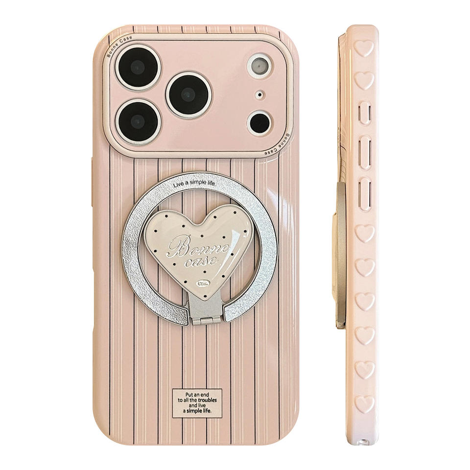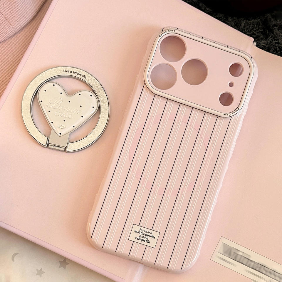 Custodia Protettiva Antiurto in TPU con Supporto Magnetico a Cuore a Righe Rosa per iPhone 17/16/15/14/13/12 Pro Max Plus Air