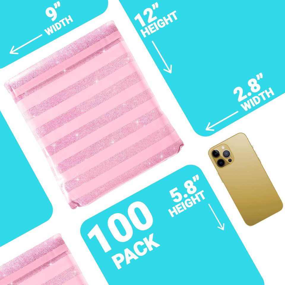 Strisce rosa 9X12 pollici Poly mailer 100 confezionare borse di spedizione autosigillate buste impermeabili elastiche per abbigliamento 9x12 pollici