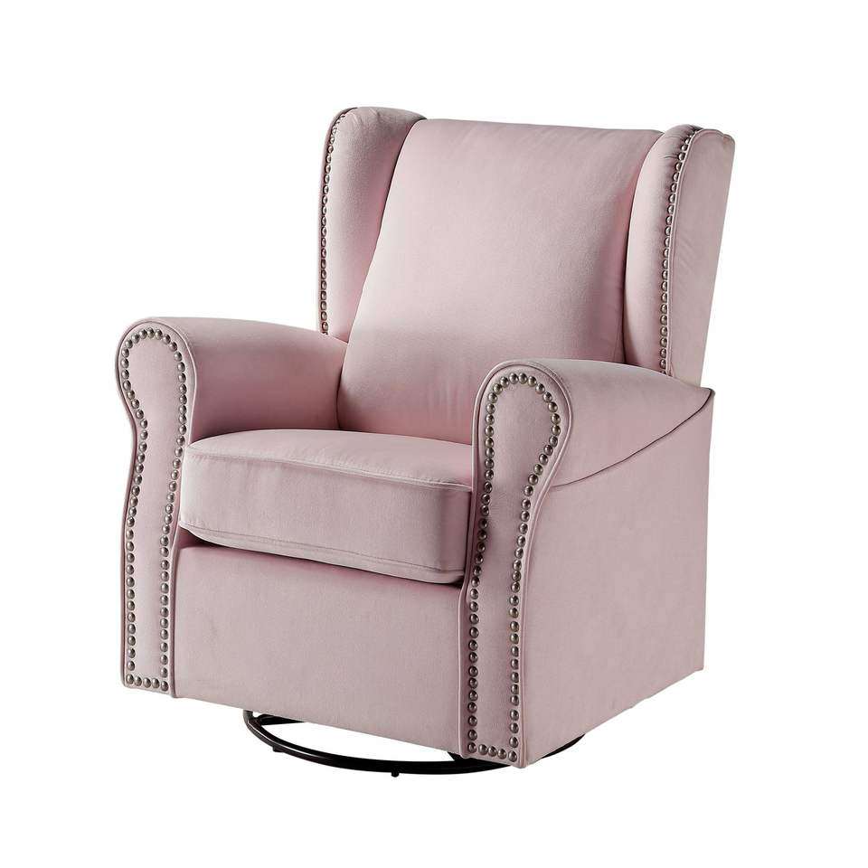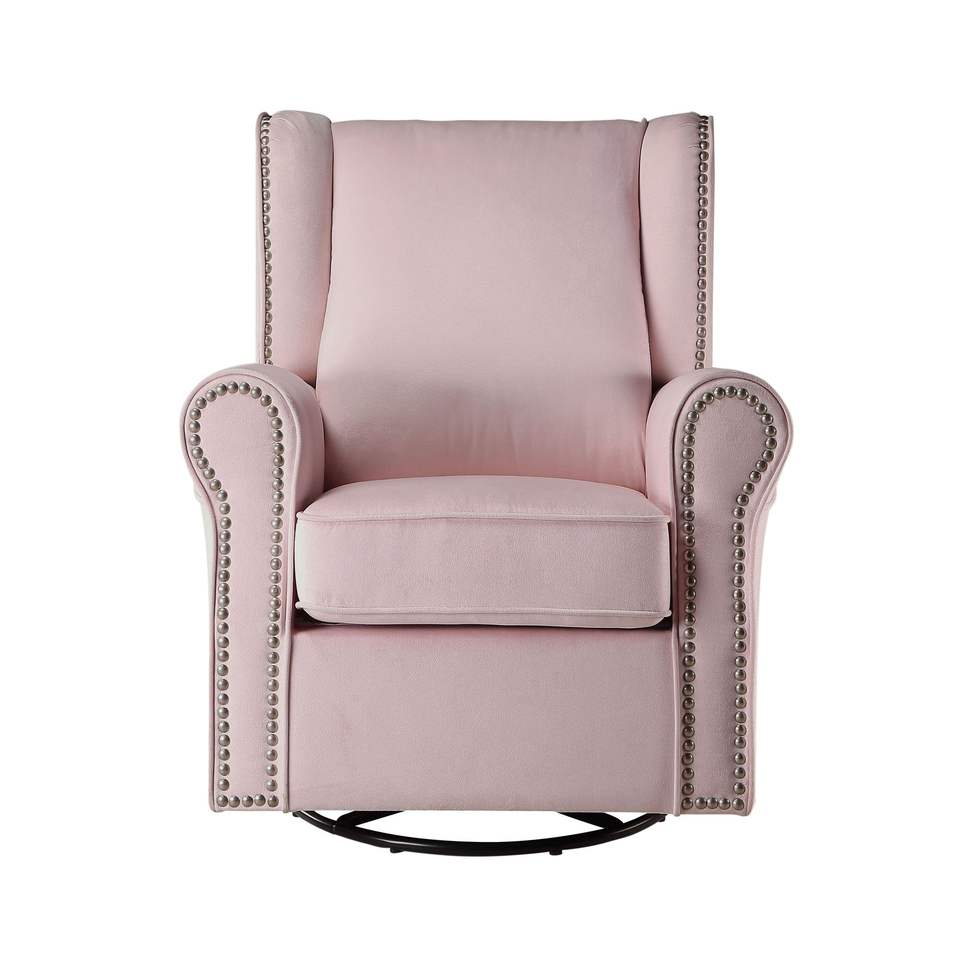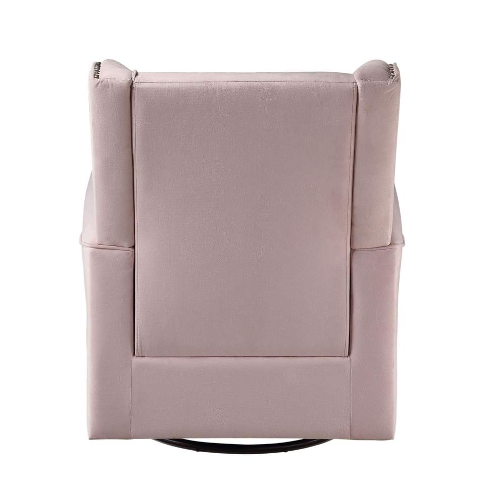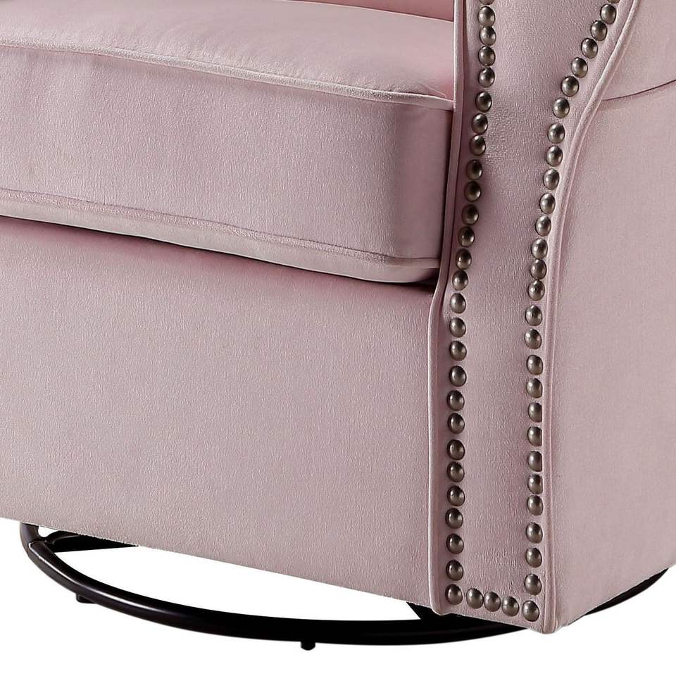 Poltrona Girevole Rosa con Braccioli Arrotondati e Dettagli Decorativi per Soggiorno