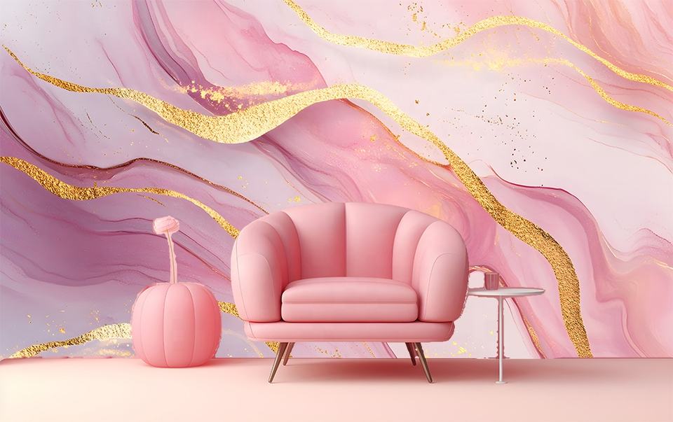 Pink and Gold 3D Wallpaper Bridal Salon Wall Decor Gilding Marble Pink Wall Mural for Bedroom Beauty Salon