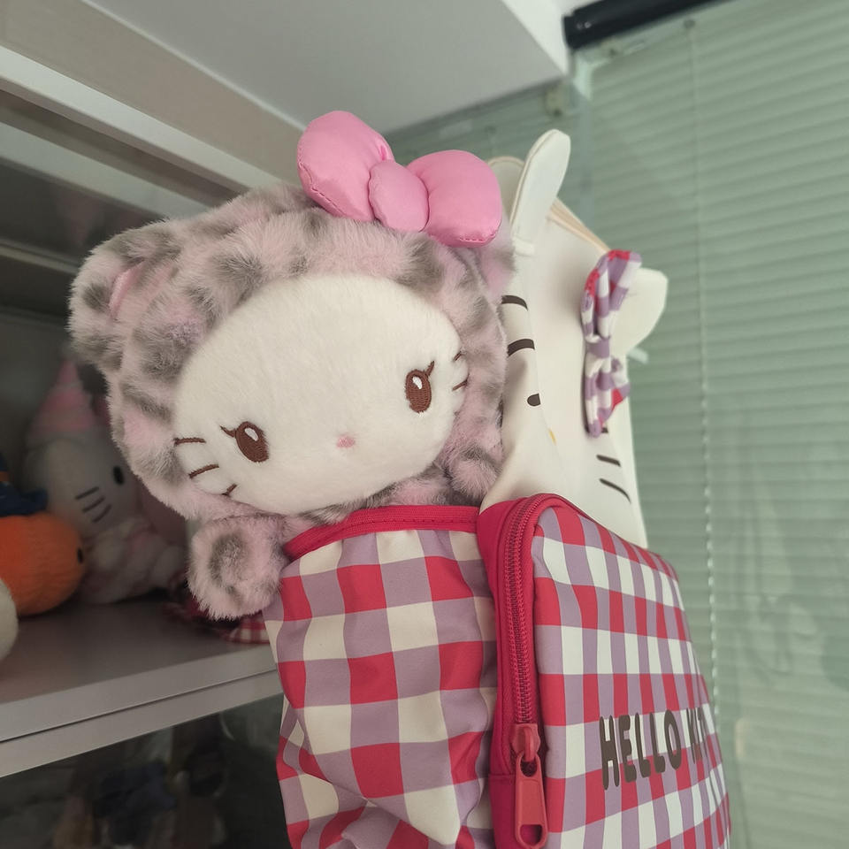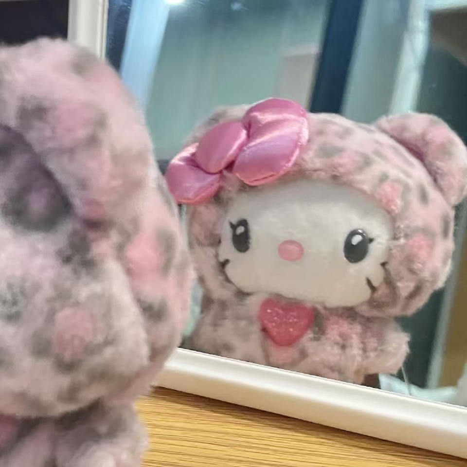 Pinky Cheetah Halo Kitty Plush Gal Kuma Hello KT Plush Leopard Kitty Cat Stuffed Animal PP Cotton Comforter for Girls