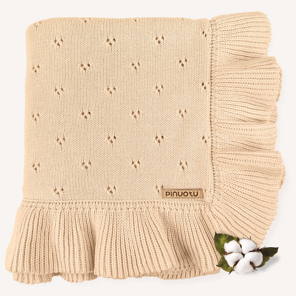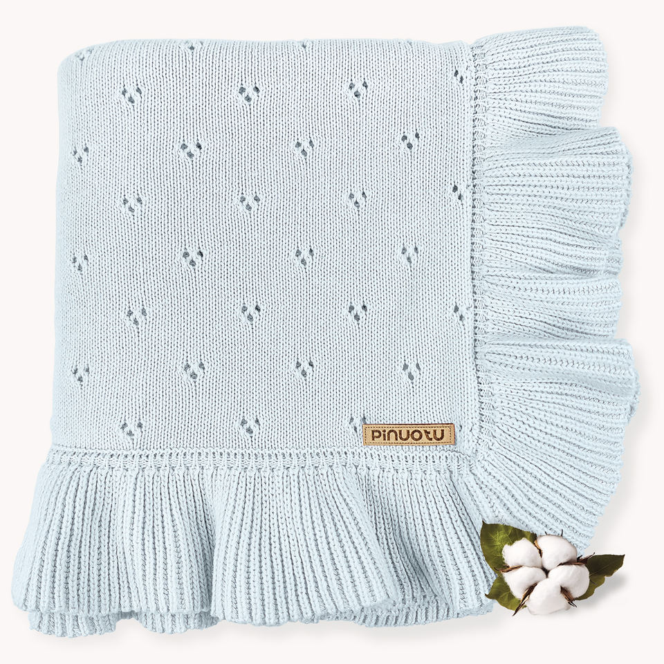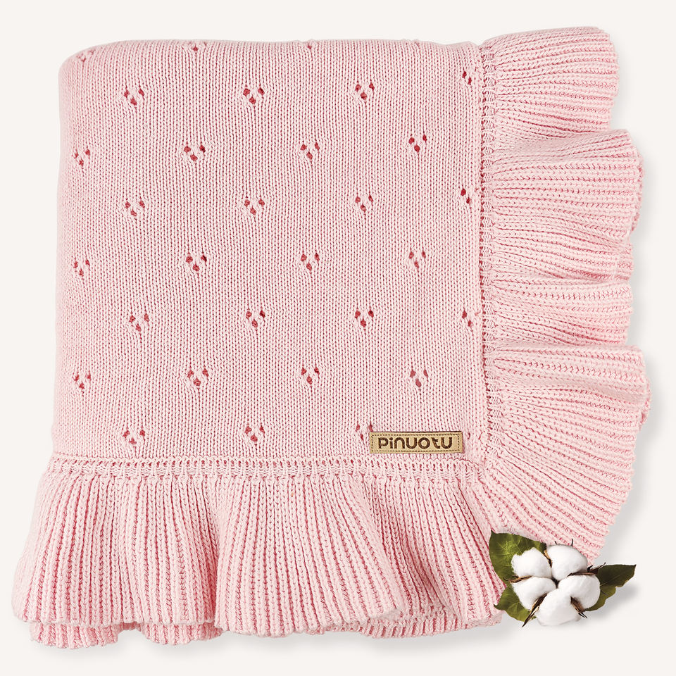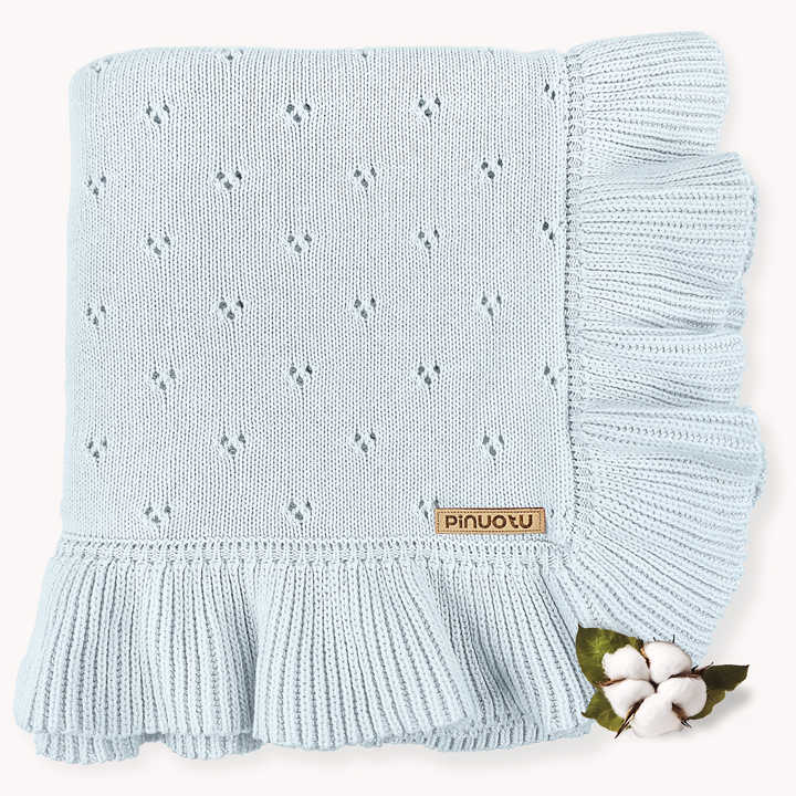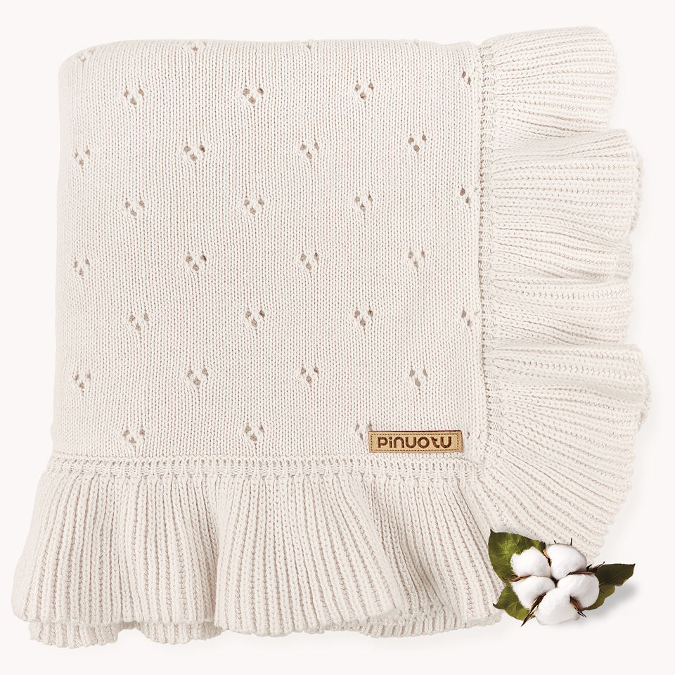 Pinuotu in maglia per bambini coperta con volant Pointelle grosso getta biancheria da letto per neonati in maglia coperta per neonato