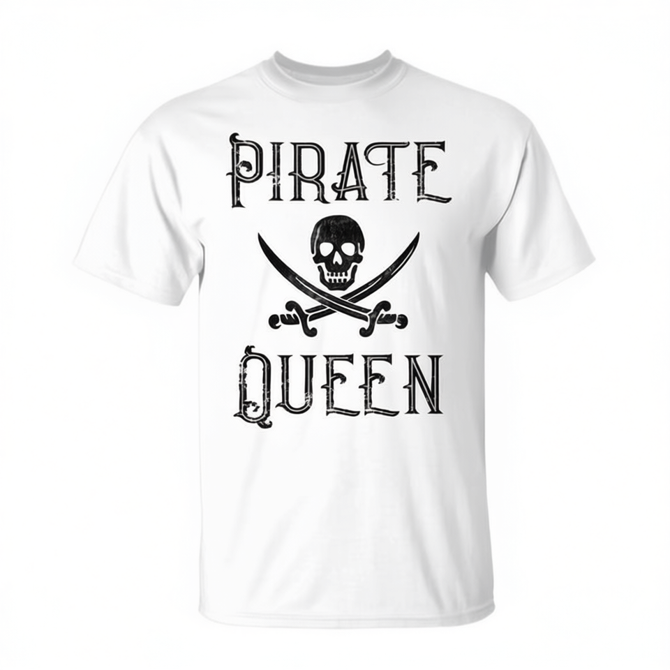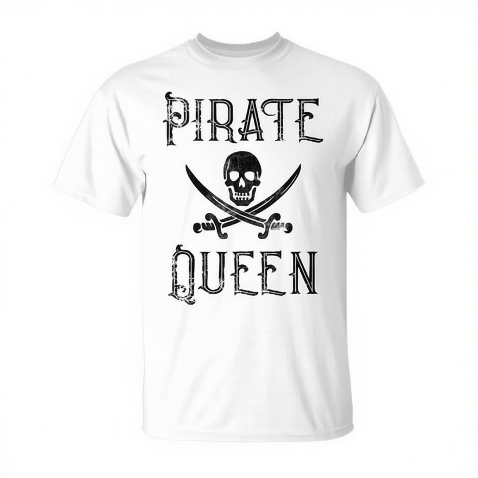 T-shirt Pirata Regina Teschio e Spade Bianca Unisex Adulto Taglia M Girocollo Manica Corta Promozionale