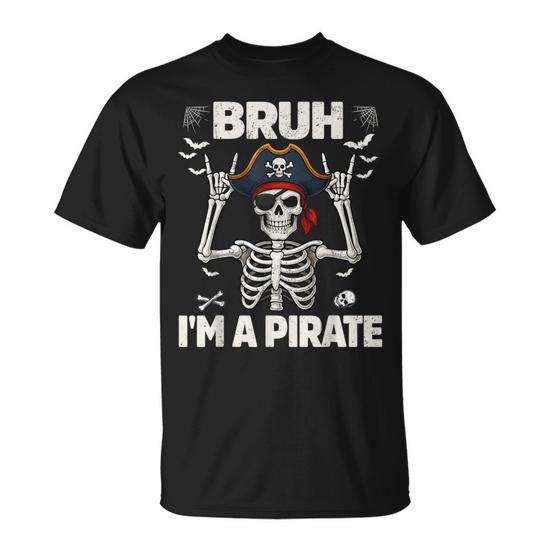 Maglietta a maniche corte con stampa digitale del scheletro pirata per Halloween, unisex, girocollo, per adulti
