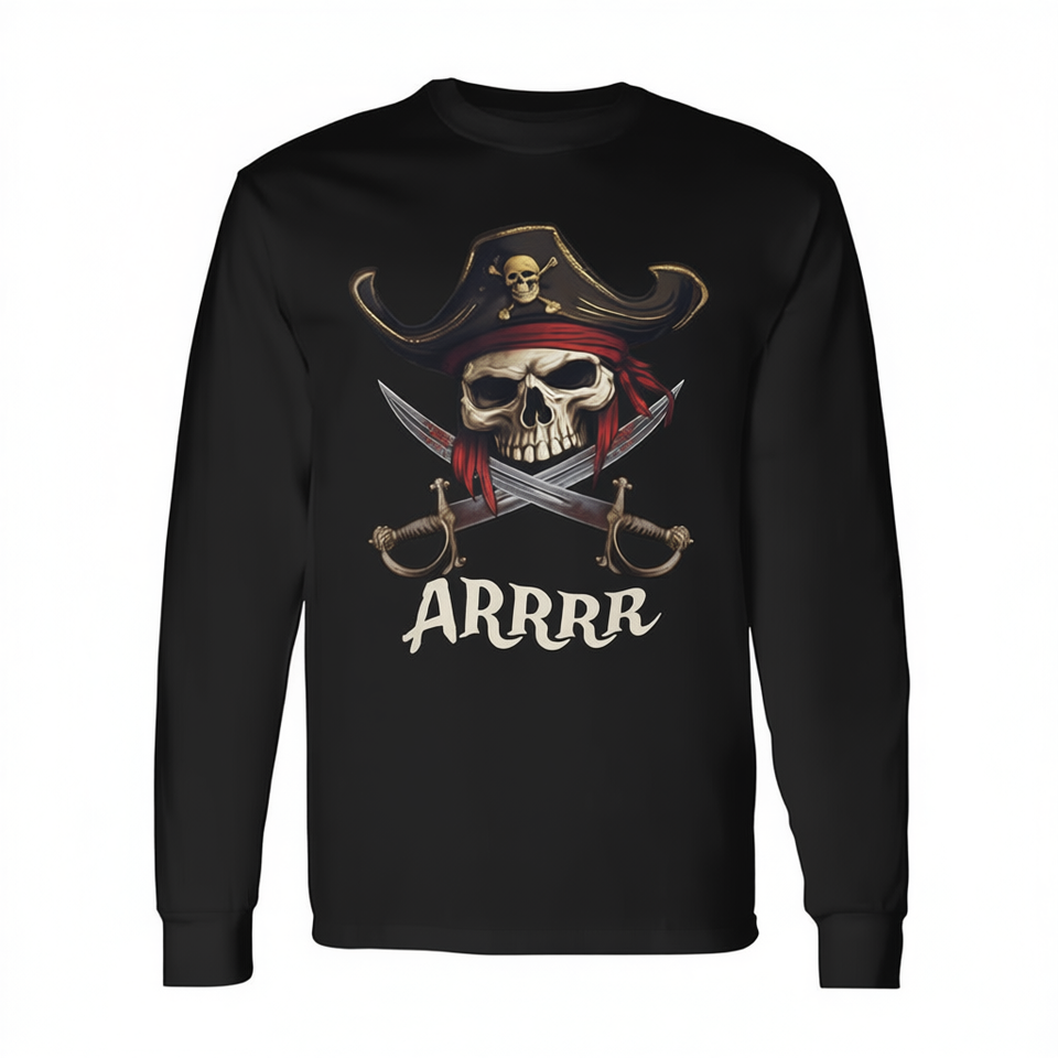 T-shirt a maniche lunghe con teschio di pirata e spade ARRR