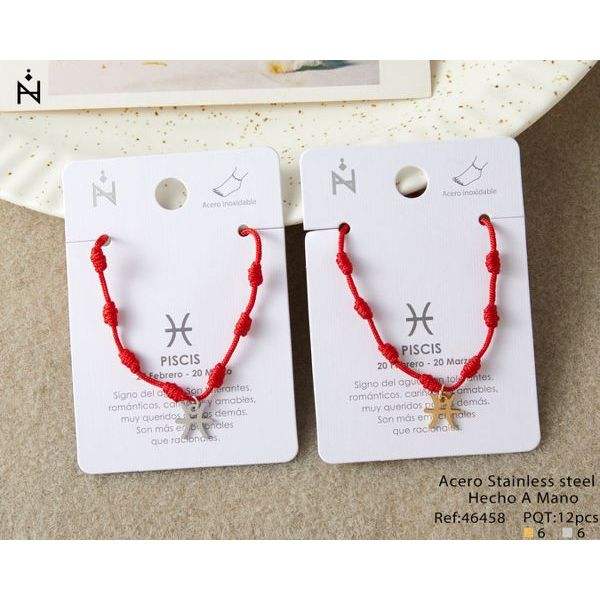 Cavigliera Sette Stelle Pesci con Cordino Rosso in Acciaio Inossidabile, Gioiello Zodiacale Fatto a Mano