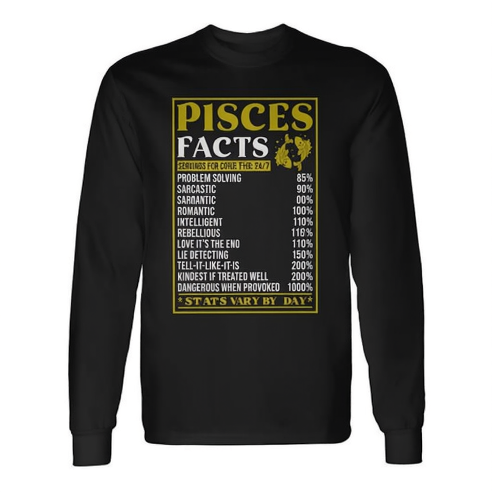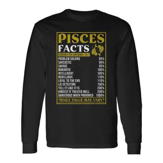 T-shirt a maniche lunghe divertente con i fatti del segno zodiacale Pesci, abbigliamento promozionale Zodiak