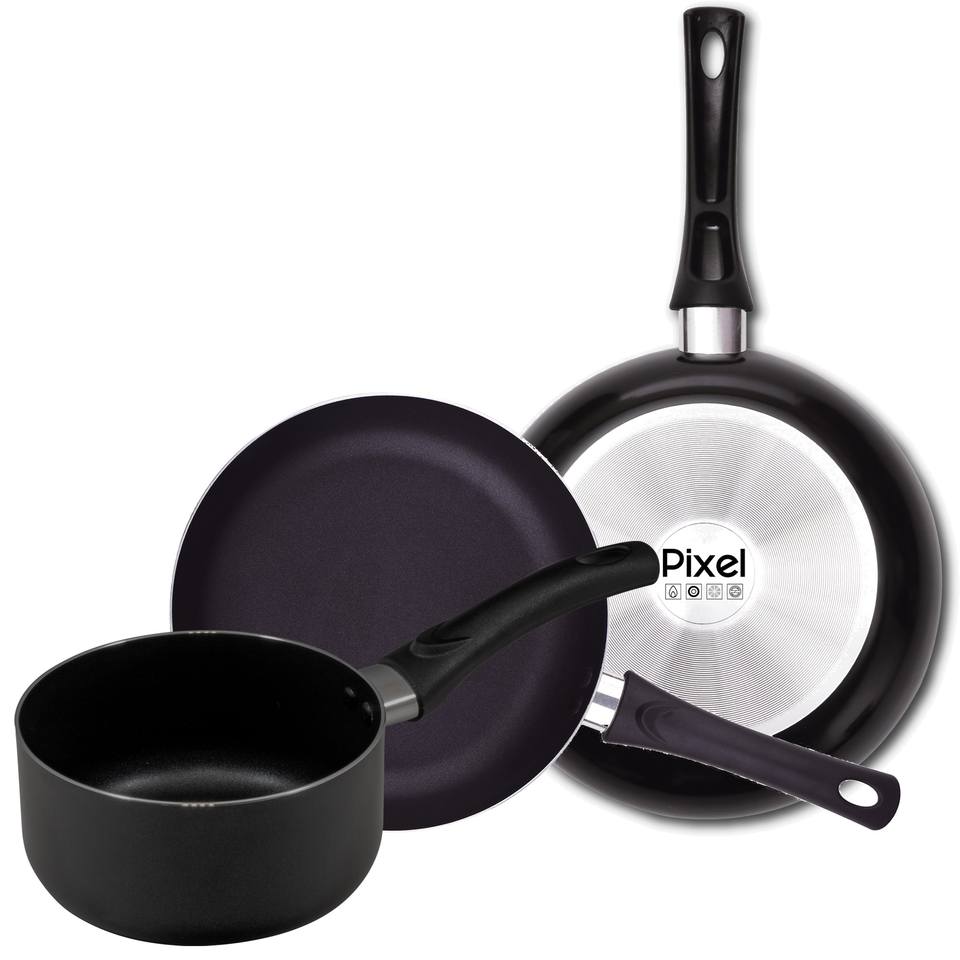Pixel 3-piece set: Saucepan 16 and 2 frying pans: 20 and 24 cm, pressed aluminum