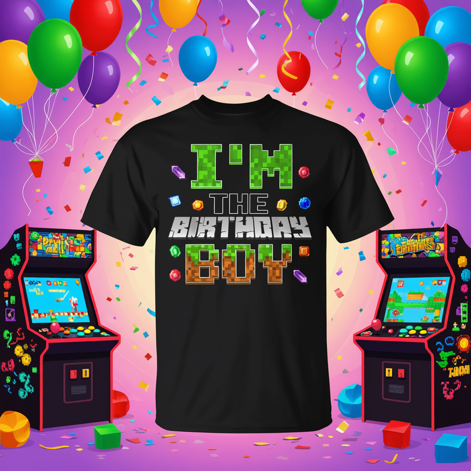 T-shirt Pixel Birthday Boy a maniche corte, girocollo, con stampa digitale, a tema gioco, per bambini, maschile