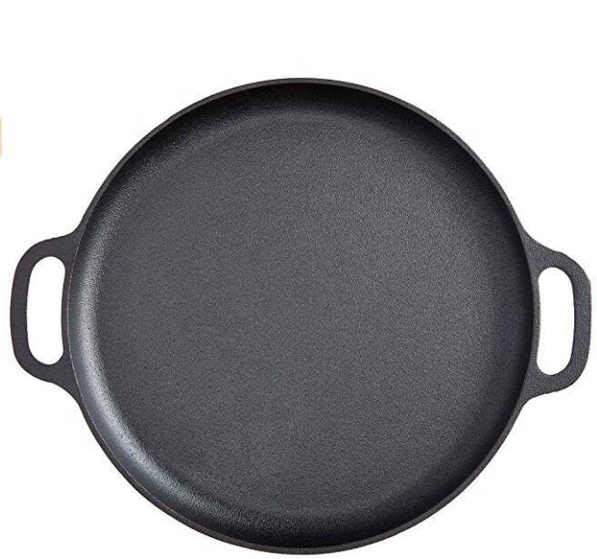 Padella per Pizza, Griglia, Padella per Friggere con Manici, Grande in Ghisa Antiaderente Pretrattata Ecologica Stile Country 35 Cm per Gas e Induzione