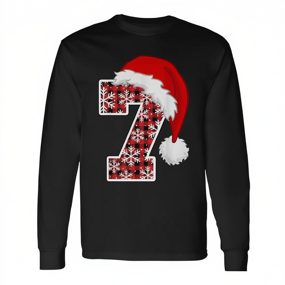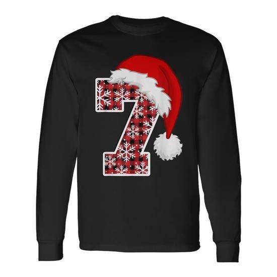 T-shirt a maniche lunghe natalizia con cappello da Babbo Natale a quadri 7 Meme