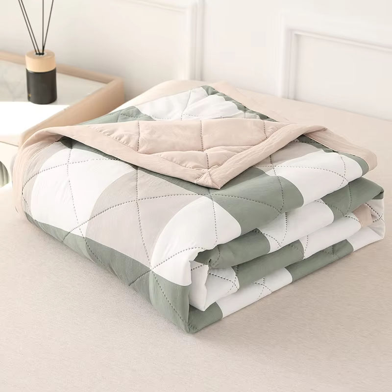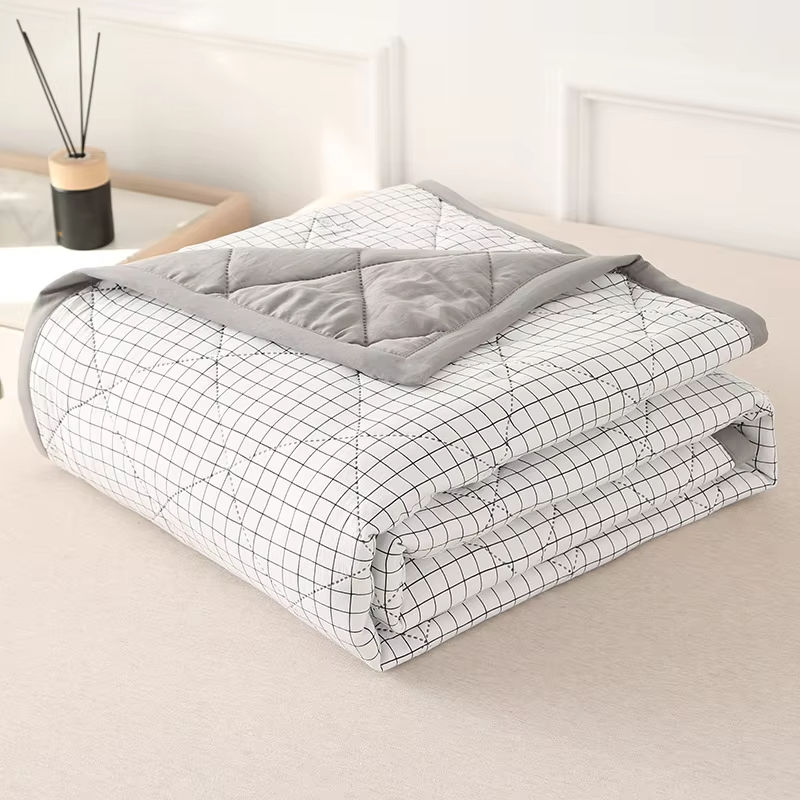 Trapuntino Estivo a Quadri in Cotone Lavato, Coperta Sottile per Aria Condizionata, Copriletto per Letto Singolo, Matrimoniale, Queen, King