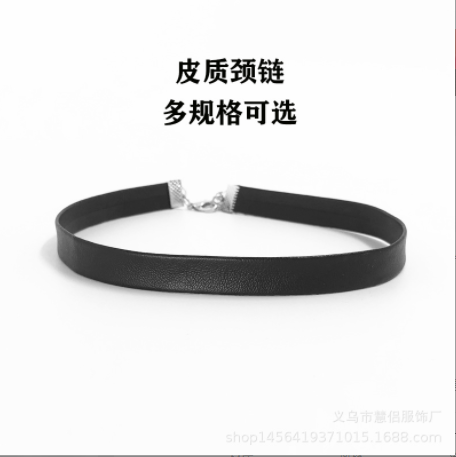 Jewelry Type:plain black leather strap choker necklace