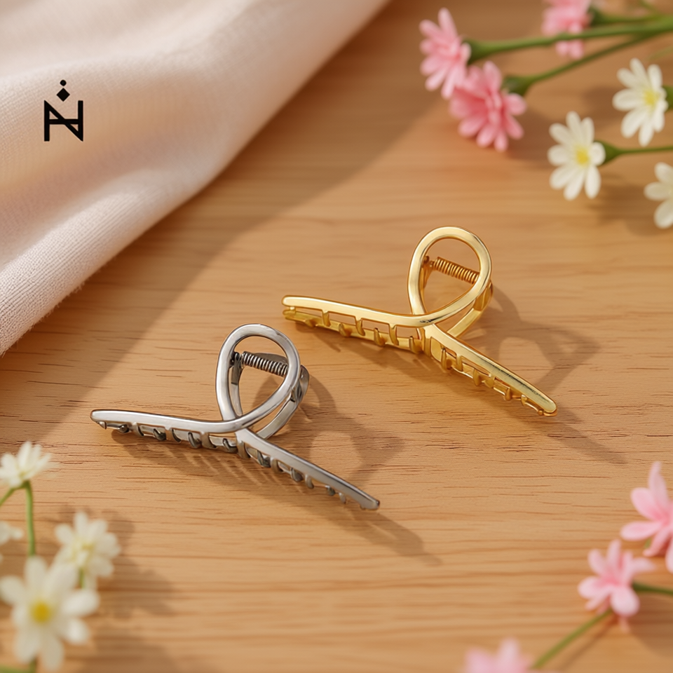 Fermaglio per capelli a croce con placchetta piatta 11 cm, colore oro e argento, per acconciature da donna