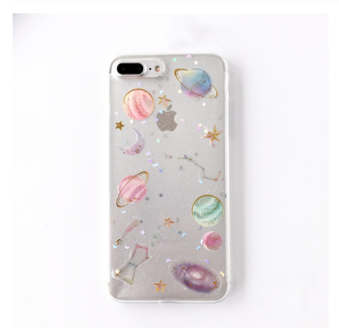 Pianeta luna stelle Glitter custodia per iPhone 15 14 13 12 11 Pro Max 7 8 6S Plus custodia morbida TPU trasparente per iPhone XS XR MAX