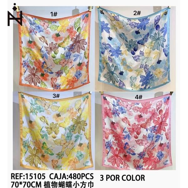 Foulard Quadrato Piccolo 70x70cm con Stampa Floreale e Farfalle, Accessorio di Moda