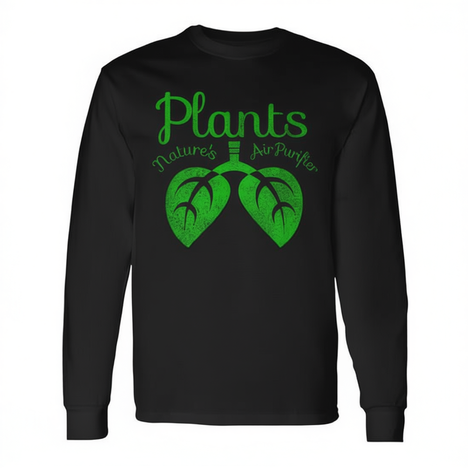 T-shirt a maniche lunghe con stampa 'Plants Nature's Air Purifier Indoor Plant Fresh Air Lungs'