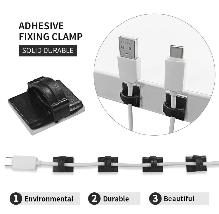 Plastic Adhesive Fixing Clamp Hook and Loop Cable Tie Clips Holder for Office Slip Through Plastic Wire Holder Machine Room