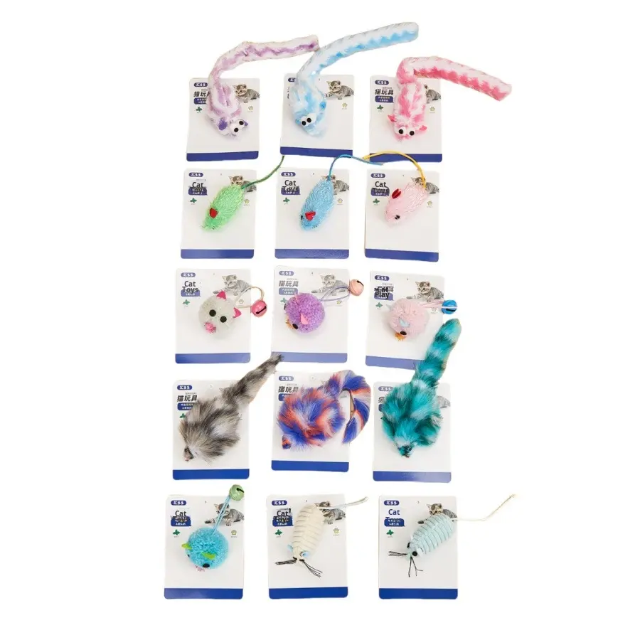 Plastic Cat Toy Teaser Bell Ball Set with Scratch-Resistant Catnip Realistic Mouse Design Interactive Pet Toy
