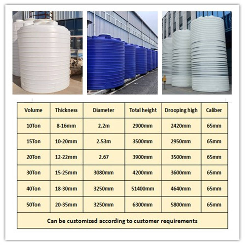 Serbatoio di stoccaggio chimico personalizzato in plastica da 20000 litri in polietilene