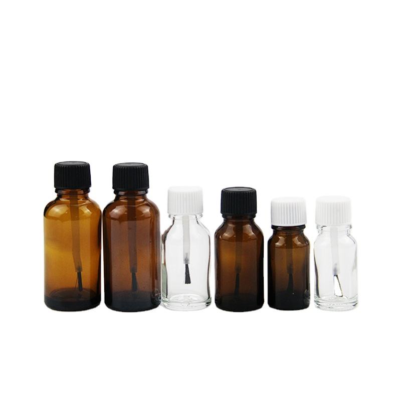 Flacone in Plastica Trasparente Ambrato con Tappo a Spazzola per Colla, Vernice, Smalto per Unghie, Olio Essenziale