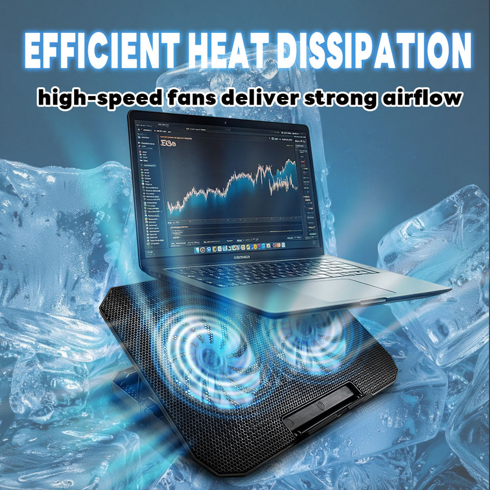 Pad di raffreddamento per Laptop in plastica con doppia ventola | Supporto di raffreddamento per Notebook regolabile per Laptop 12-16 pollici