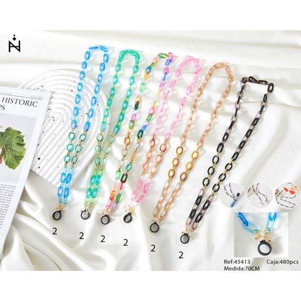 Catena di plastica con chiusura a tre vie, 70 cm, per occhiali e accessori