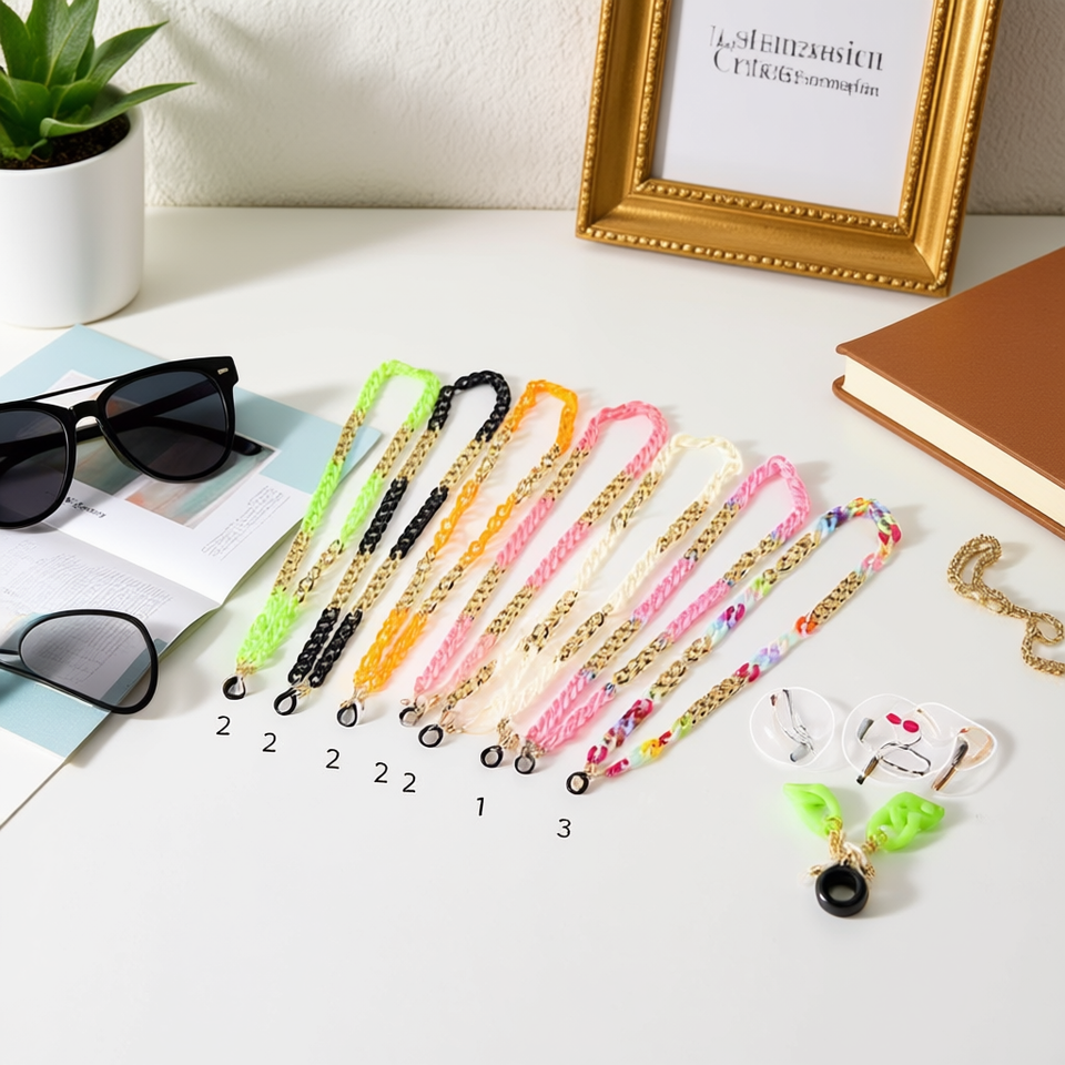Catena di plastica con chiusura a tre maglie, 70 cm, per occhiali, catena per occhiali
