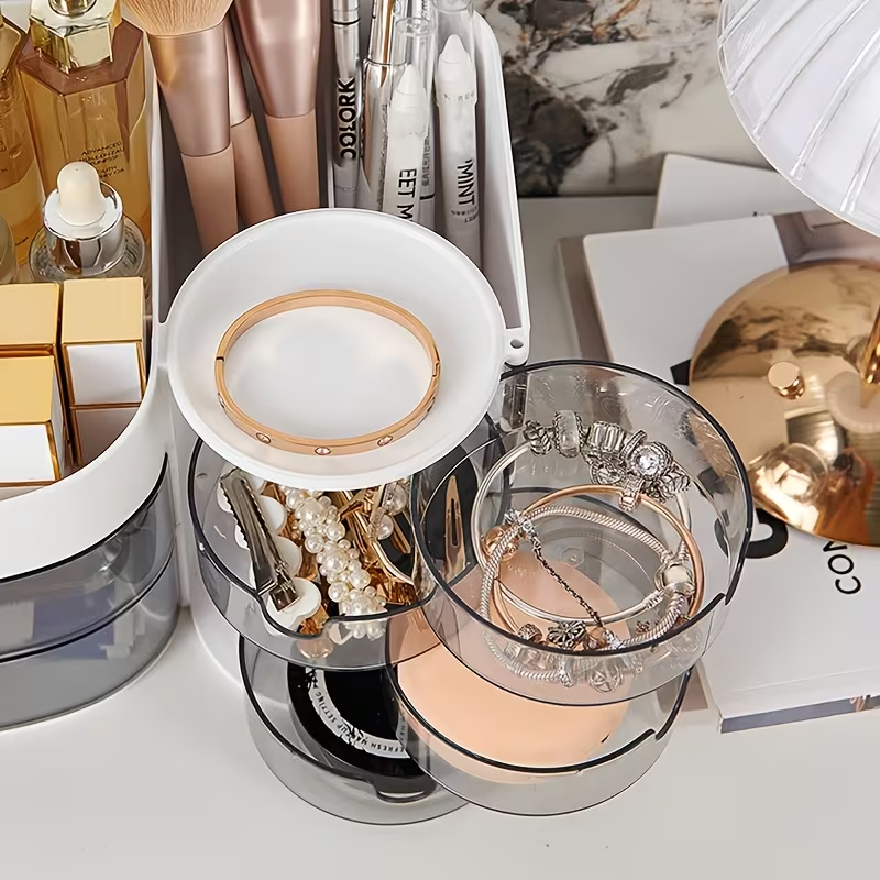 Plastic Makeup Organizer with Dust-Proof Cover, Countertop Cosmetic Storage Box, Independent Vanity Tray with 2 Drawer