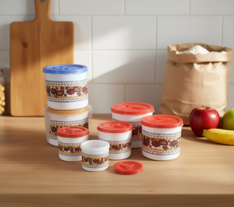 Set di Contenitori in Plastica per Conservazione, 5 Pezzi da 360ml, 600ml, 1L, 1.5L, 2.2L con Coperchio a Vite e Design Floreale per Uso in Cucina