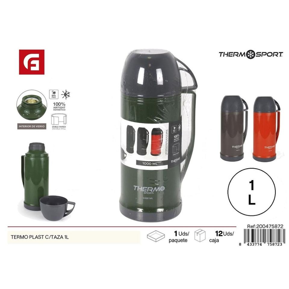 Plastic Thermos with 1L Cup - Kitchen Utensils and Storage