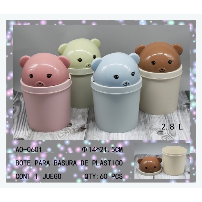 Bidone della spazzatura in plastica con coperchio con Design orso-14*21.5CM-grazioso contenitore per rifiuti