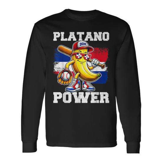 T-shirt a maniche lunghe Platano Power con bandiera dominicana per bambini e ragazzi