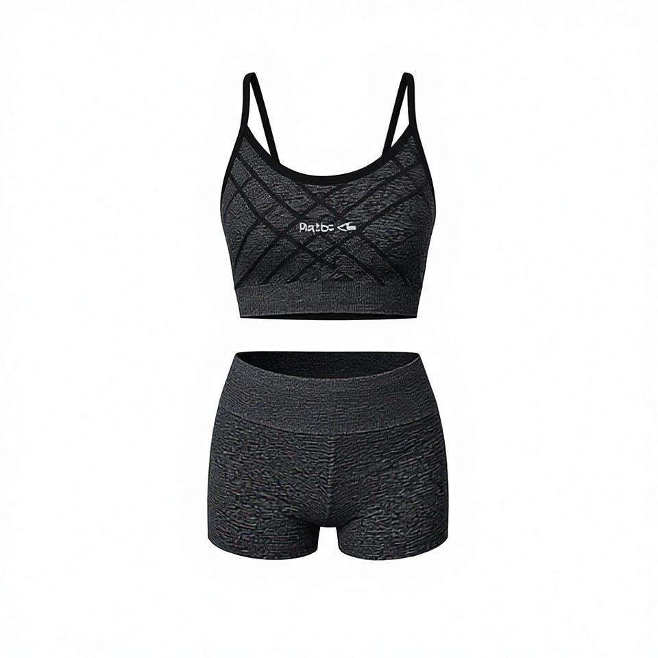 Platbe Women's Sports Fitness Two-Piece Yoga Set Mesh Strap Vest+Shorts SZ-27 for Workout & Flexibility