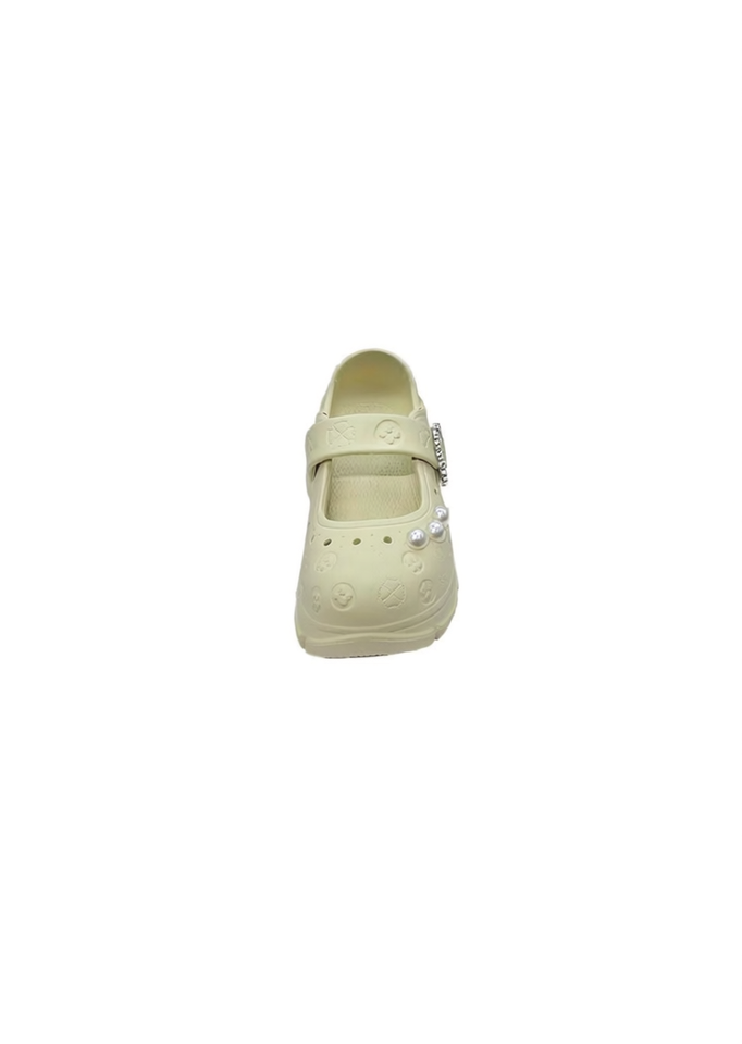 Zoccoli con plateau e perle, stile Mary Jane, estivi, da donna e ragazza, morbidi, leggeri, a punta chiusa, in plastica, taglia 20
