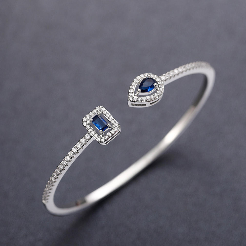 Bracciale in platino con diamanti e zaffiri blu taglio smeraldo, diamanti naturali, design minimalista per donna, da indossare tutti i giorni