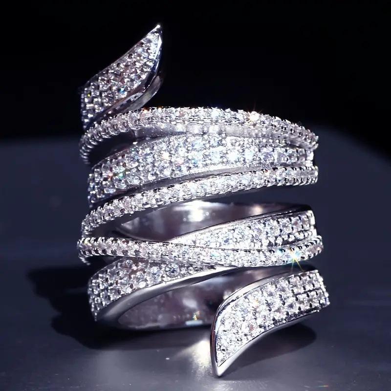 Platinum Diamond Ring Women's Luxury Wedding Band Round Brilliant Cut Natural D Color White Diamonds T0403