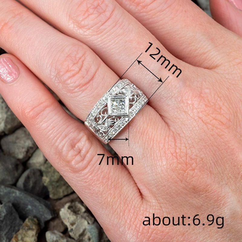 Platinum Diamond Ring Women's Princess Cut Natural D Color Engagement Band With Side Diamonds Q952