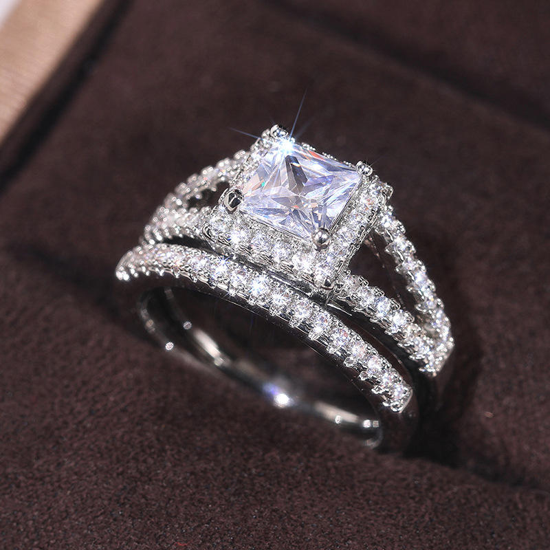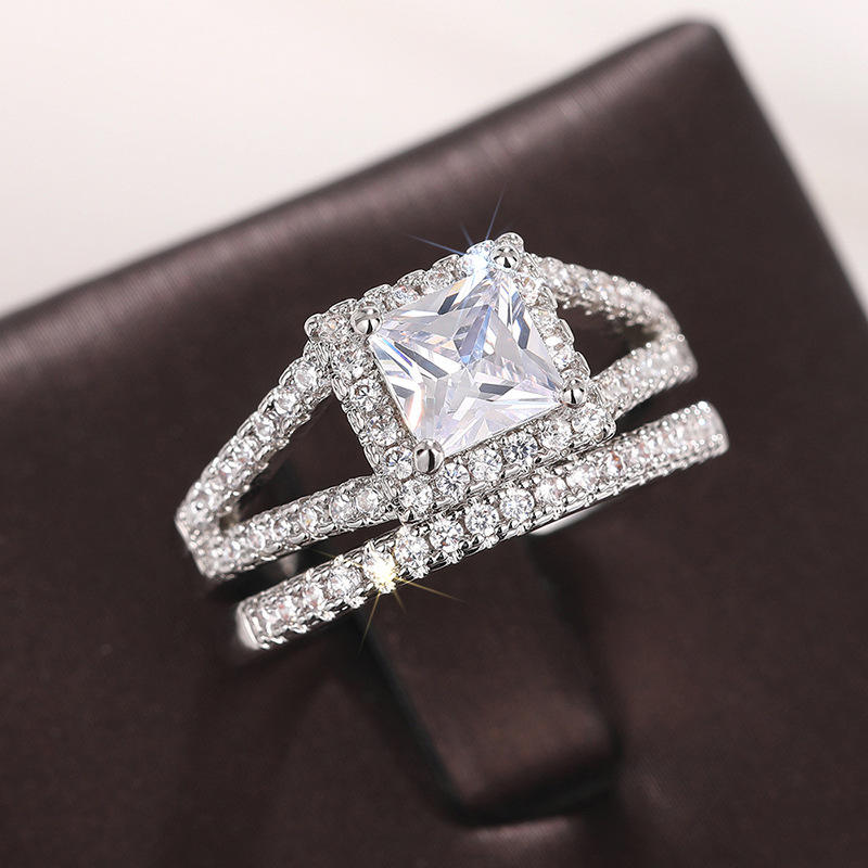 Anello di fidanzamento da donna in platino con diamante taglio Princess, diamanti naturali colore D e design a halo
