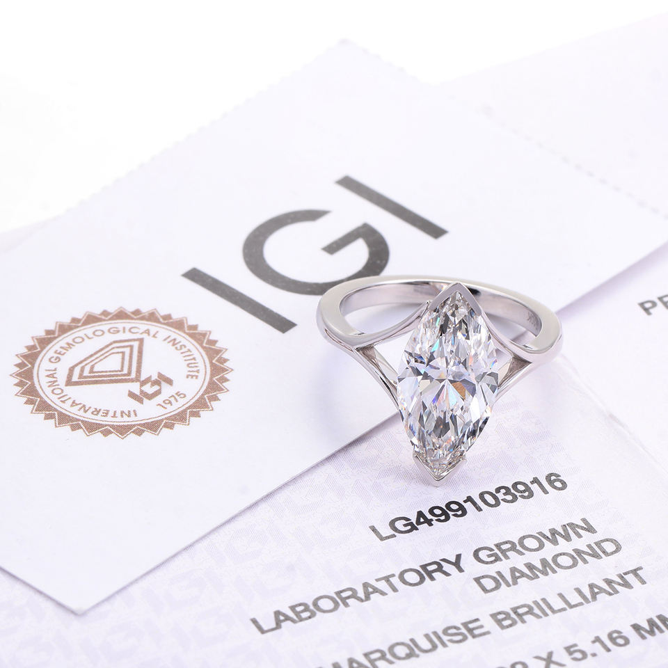 Platinum Solitaire D VS1 3.0CT Marquise Cut Diamond Lab Grown Engagement Ring Certified IGI for Women