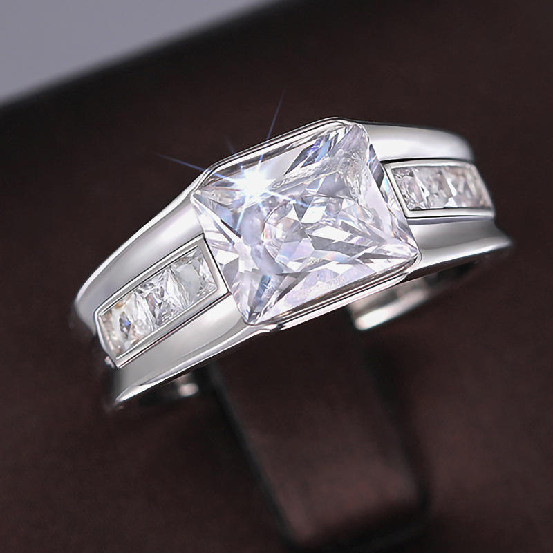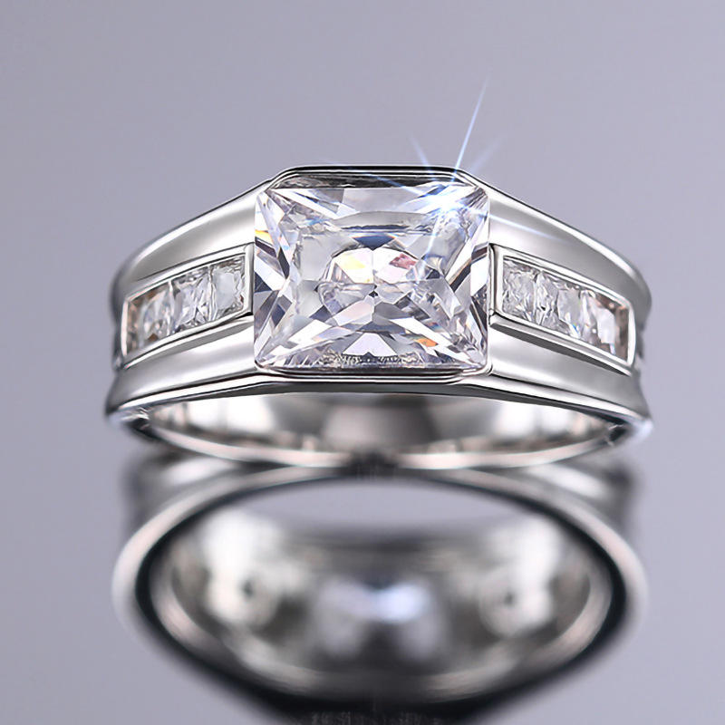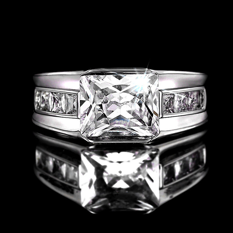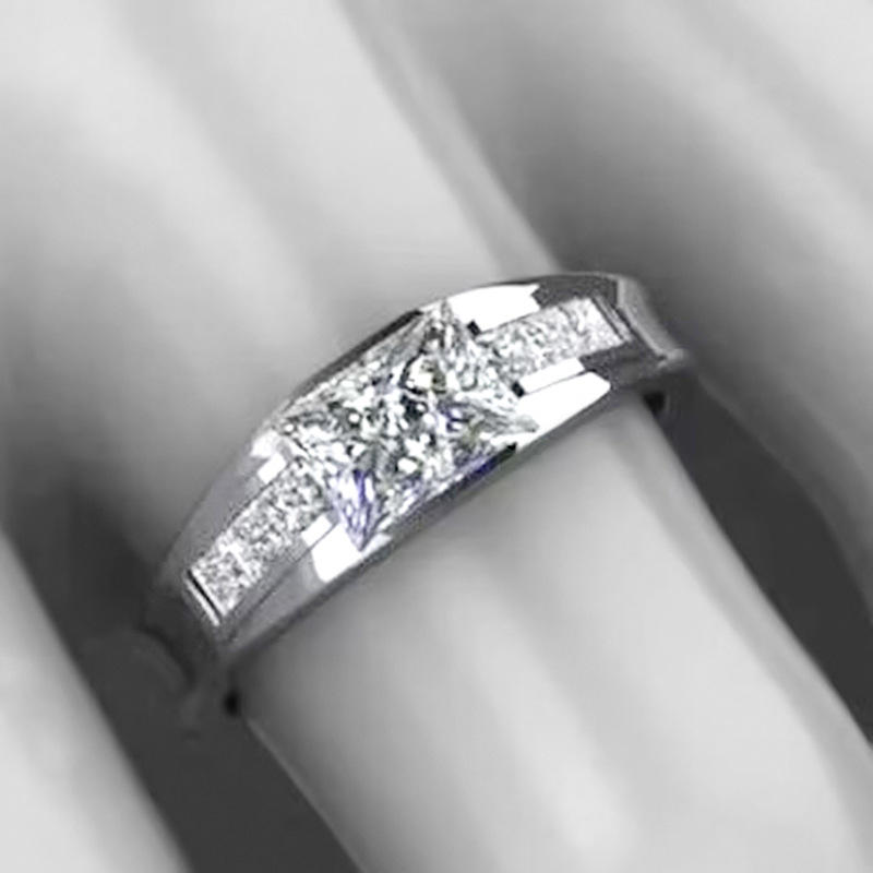 Platinum Women's Engagement Ring Princess Cut Natural Diamond D Color Side Diamonds T0231