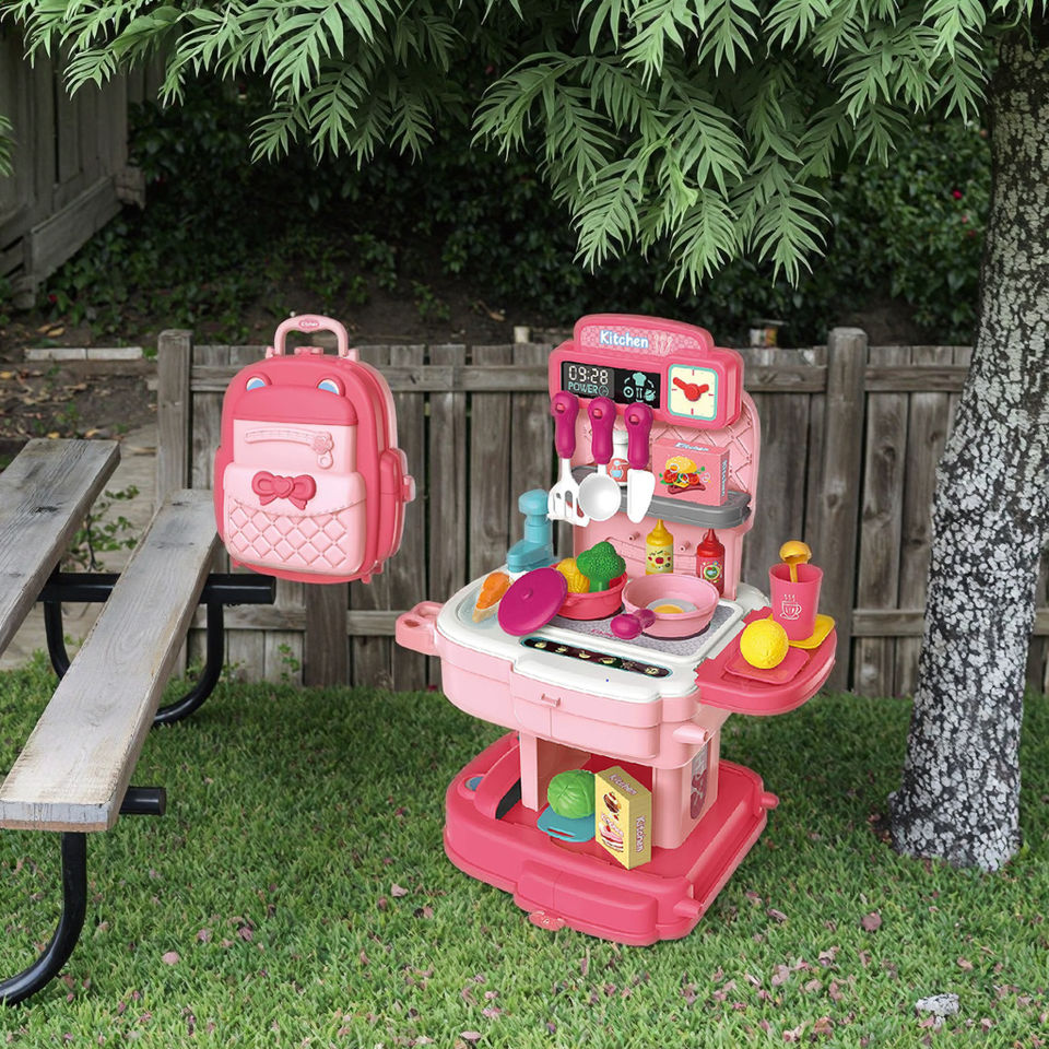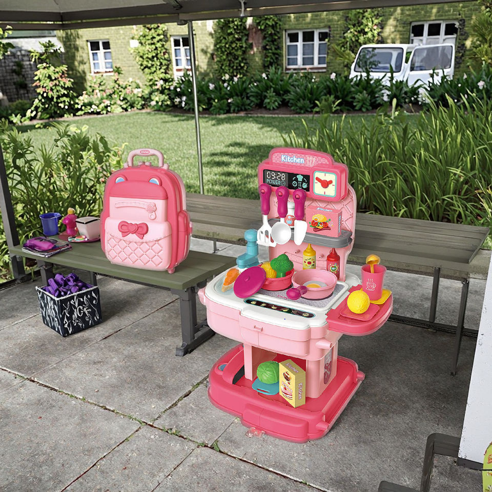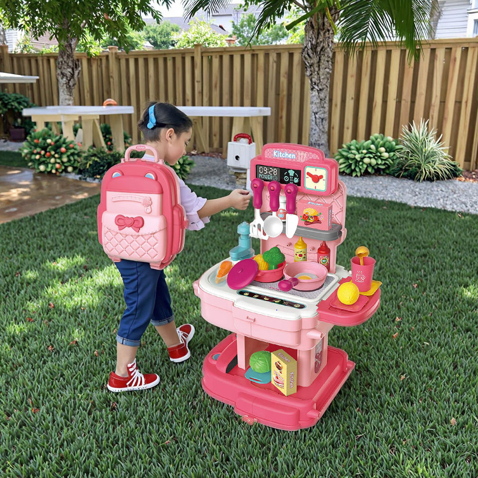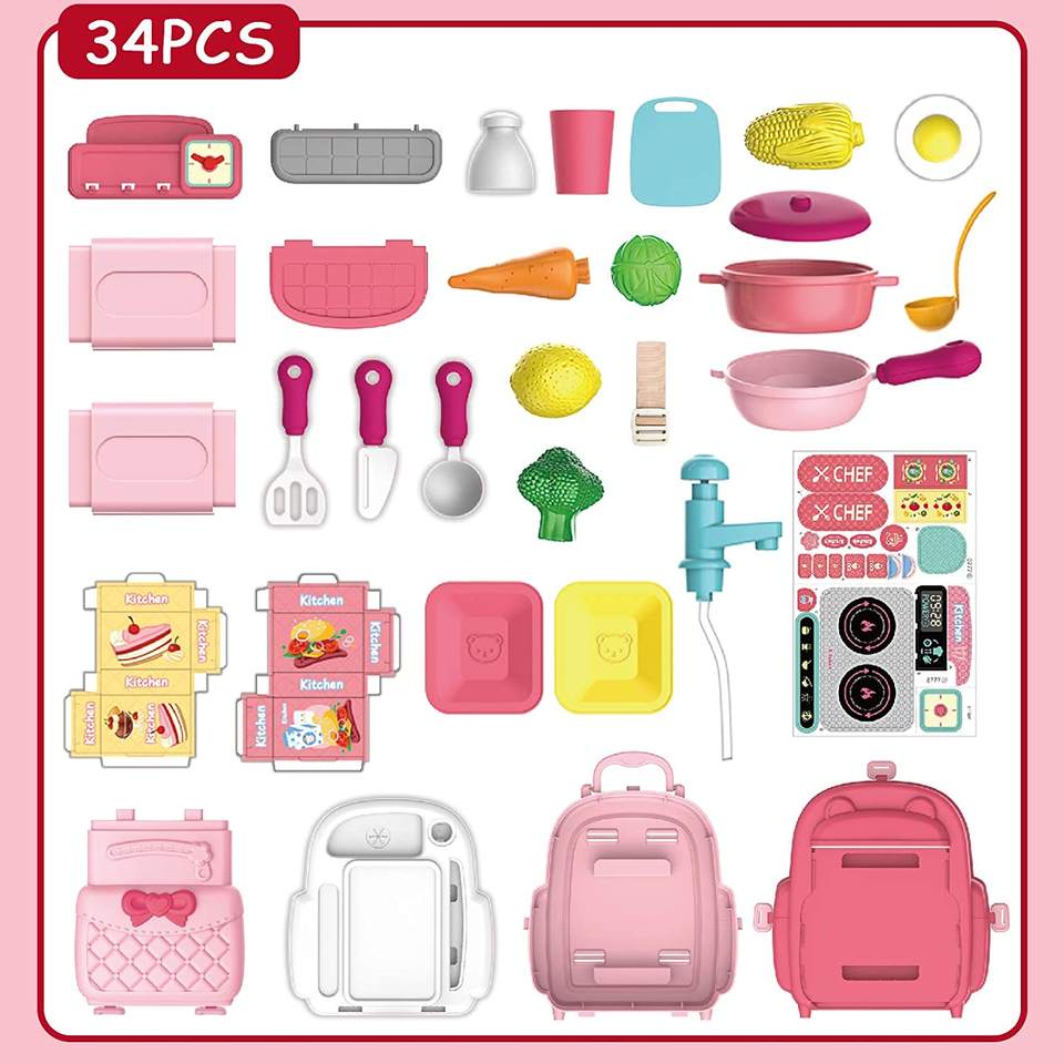 Zaino Cucina Giocattolo - Cucina Giocattolo 2-in-1 con 34 Accessori Simulati, Rimovibile e Facile da Riporre