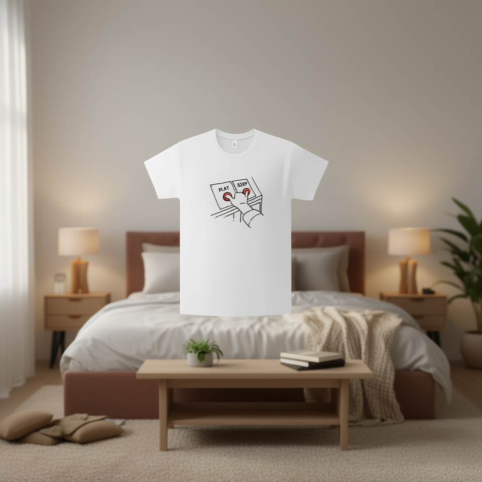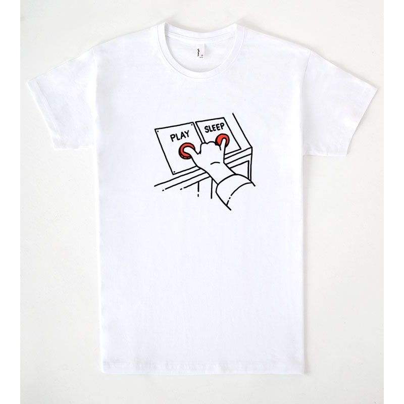 T-shirt Play Sleep bianca con design grafico, abbigliamento casual unisex
