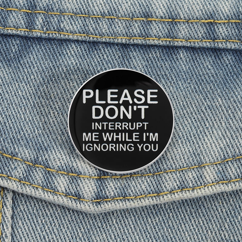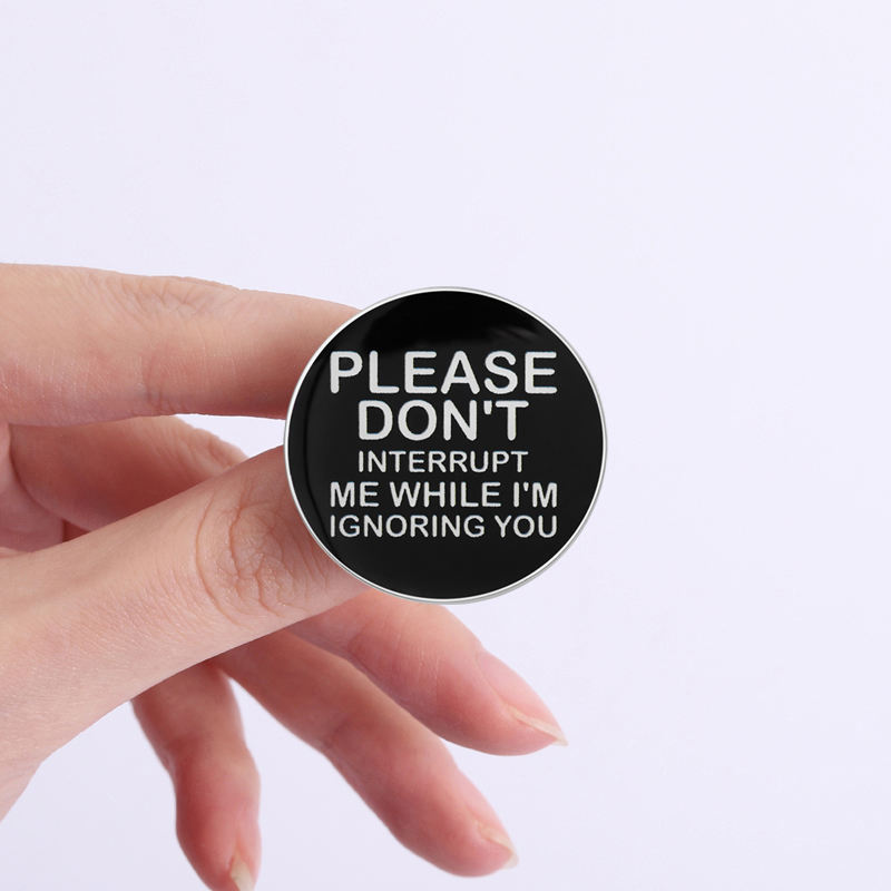 Spilla in smalto con citazione sarcastica divertente: 'Per favore, non interrompimi mentre ti ignoro', distintivo da risvolto, gioiello, regalo, all'ingrosso