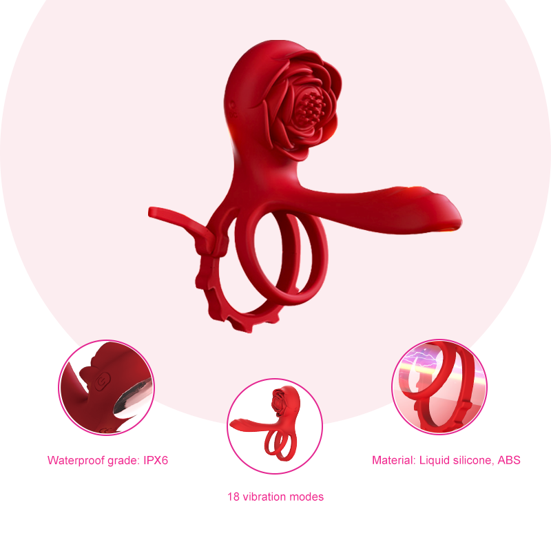 Vibratore Rose di Nuovo Design PleasureHub, Marchio Privato, Anello Penieno in Silicone Ricaricabile USB, Stimolatore Clitorideo per Coppie