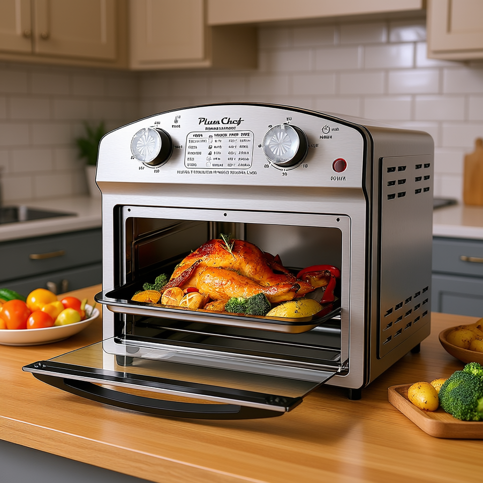 Friggitrice ad Aria Plum Chef 12 Litri in Acciaio Inox con Doppio Controllo a Manopola, 450°F, Timer 60 Minuti, per Uso Domestico