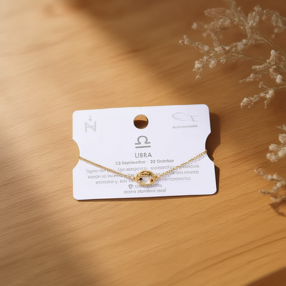 Collana Plus Era Libra in Acciaio Inossidabile Tono Oro con Ciondolo da 12mm, Gioielli Astrologici
