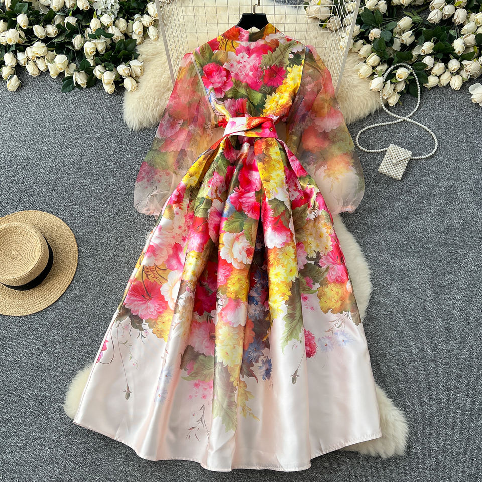 Abito Midi Casual da Donna Taglie Forti Primavera 2025 con Scollo a V, Tunica Slim con Fasce, Maniche a Lanterna, Stampa a Rete, Bianco